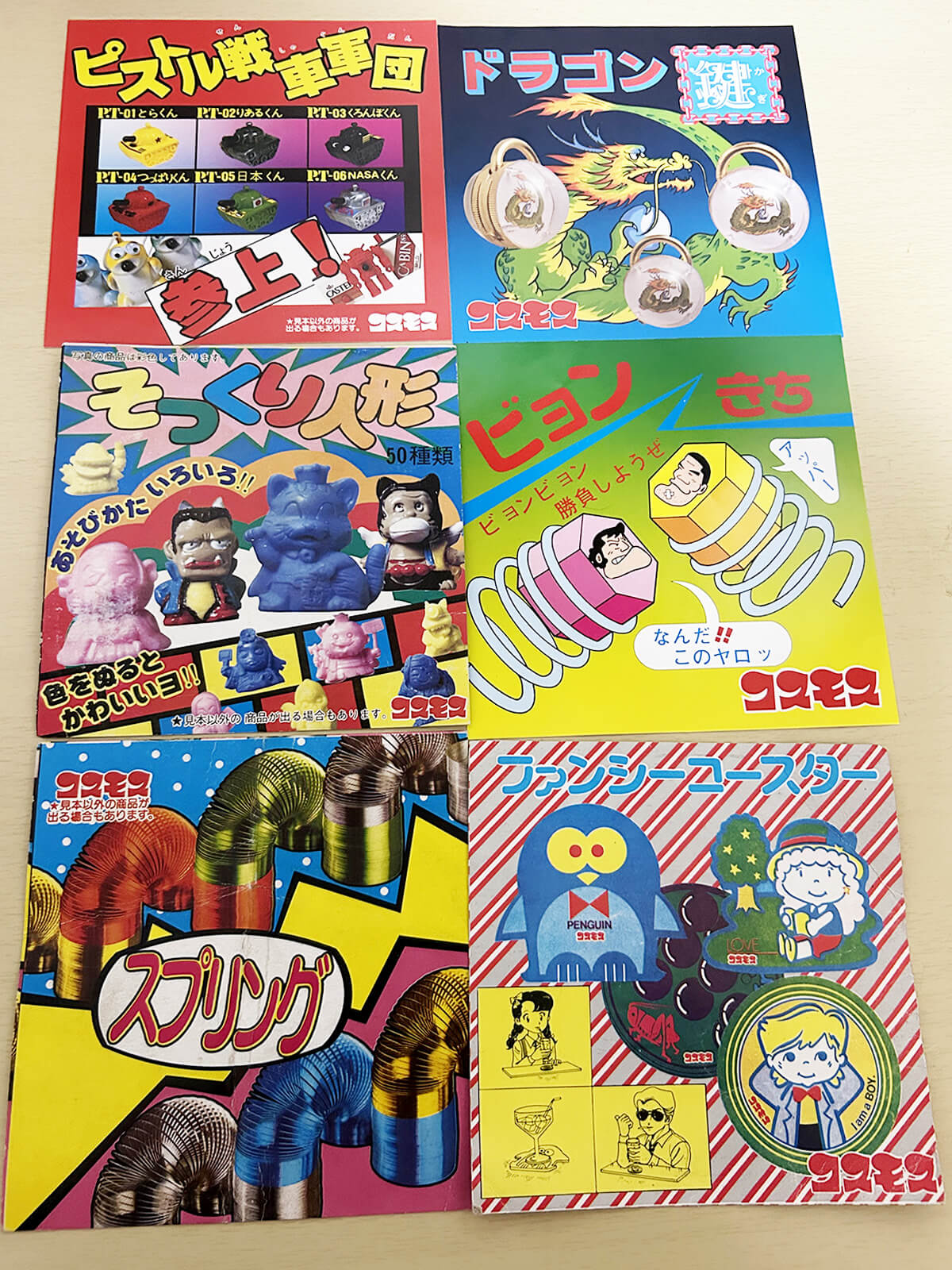 埼玉県にかつて存在した幻のメーカー「コスモス(1977年~88年)」そのカプセルトイのディスプレイ(台紙)20円・50円時代のモノを12枚増量して全212枚。更に、当時のレアなアイテムもプラスし、50ページのボリュームでリニューアル。